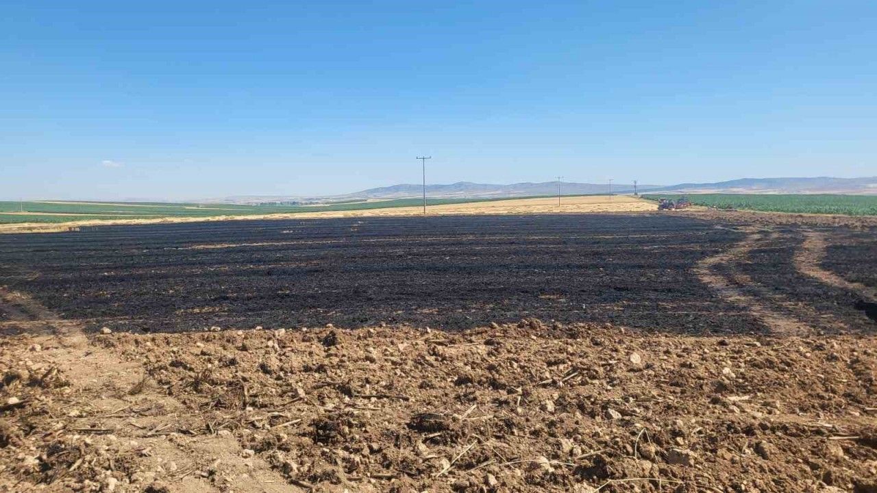 Eskişehir’de buğday hasadı sonrasında 40 dönümlük tarım arazisinde yangın çıktı.