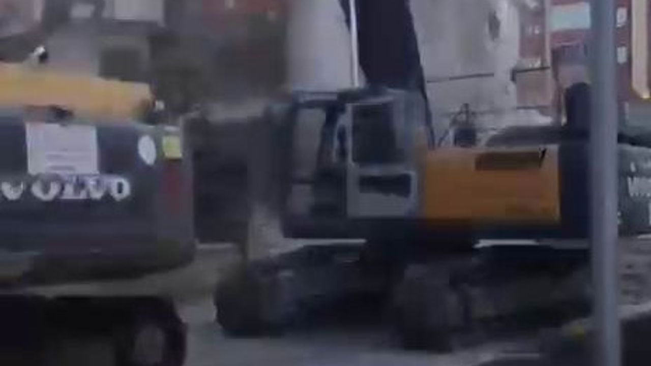 Olay, merkez Sürsürü Mahallesi Kanalboyu bölgesinde yaşandı. 6 Şubat 2023’te Maraş merkezli depremlerde ağır hasar alan 5 katlı binanın yıkımı için bölgeye kepçe yönlendirildi. İş makinesinin yardımı ile başlayan yıkımda bina, kepçenin tek dokunuşu ile yerle bir oldu. Kepçe operatörü, yıkımda fırlayan taş parçalarından araçtan atlayarak kurtulmaya çalıştı. O anlar, cep telefonu kamerası ile kaydedildi.