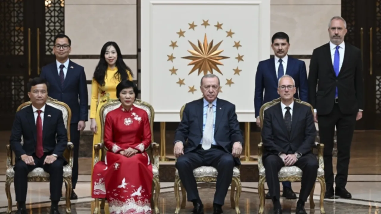 Kabulde Belarus Büyükelçisi Anatoly Glaz, Brezilya Büyükelçisi Gilda Motta Santos Neves, Ekvador Büyükelçisi Pedro Vintimilla, Gürcistan Büyükelçisi Archil Kalandia ve Vietnam Büyükelçisi Dang Thi Thu Ha, Cumhurbaşkanı Erdoğan'a güven mektuplarını sundu.