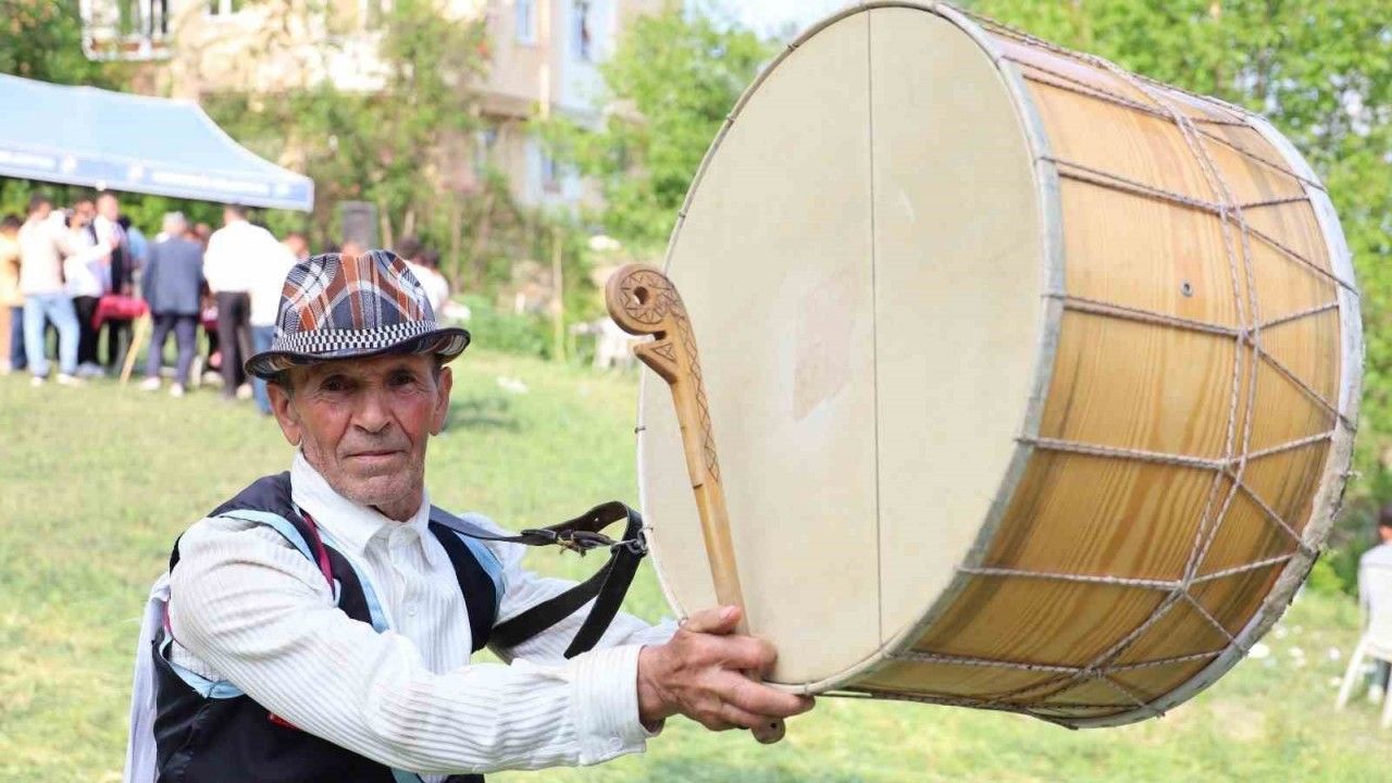 Vezirköprü’nün Sarıdibek Mahallesi Ambaryanı Sokak’ta yapılan düğün ve geleneksel güreşlerde sahne alan usta davulcu Ömer Kaçar, sabahın erken saatlerinden itibaren yaklaşık 8 saat boyunca aralıklarla davul çalarak hem güreşlere hem düğüne coşku kattı.