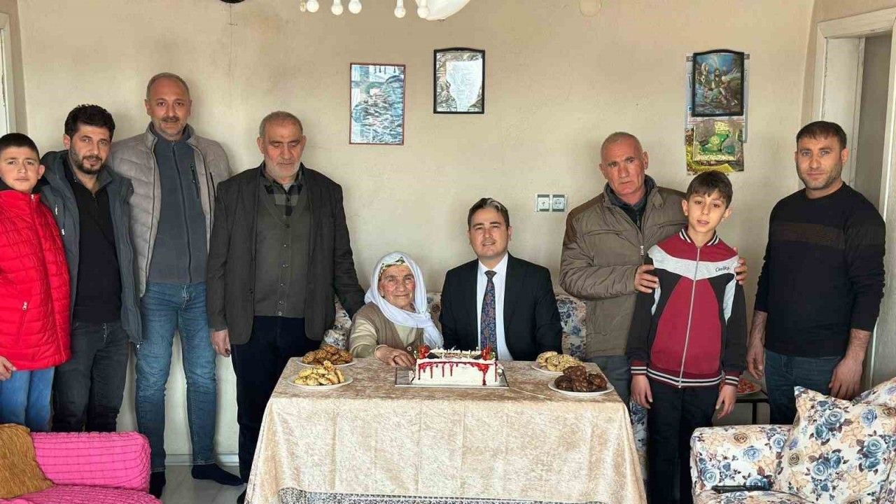 Kaymakam Arıkan, İlçe Sosyal Yardımlaşma ve Dayanışma Vakfı Müdürü Hakan Hanbaba ve vakıf çalışanlarıyla birlikte Hanım Demir’i Adnan Menderes Mahallesi’ndeki mütevazı evinde ziyaret etti. Ellerinde doğum günü pastası ve hediyelerle karşısına çıkan Kaymakam Arıkan’ı gören Hanım Demir, mutluluk ve şaşkınlığı bir arada yaşadı.