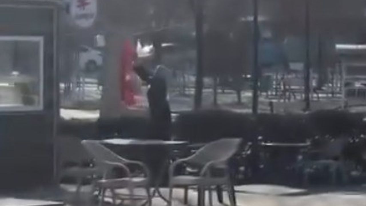 Görüntülerde kadının yol kenarında asılı Türk bayrağını kesmeye çalıştığı ve çevredekilerin kadına tepki gösterdiği öğrenildi. Yaşanan o anlar ise yine cep telefonu kamerası ile kaydedildi.