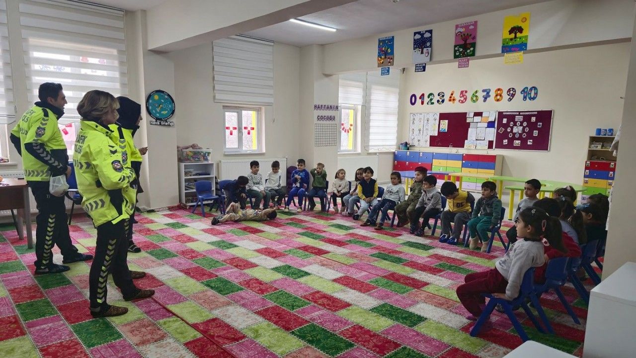 Bitlis’in Ahlat ilçesindeki trafik polisleri, ana sınıfı öğrencilerine yönelik trafik güvenliği eğitimi verdi.