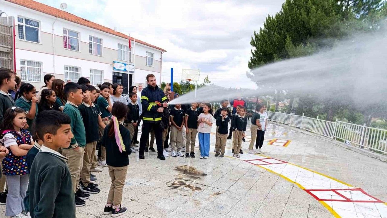 Alaca Belediyesi İtfaiye Müdürlüğü tarafından ilkokul öğrencilerine yönelik yangın eğitimi programı düzenlendi.