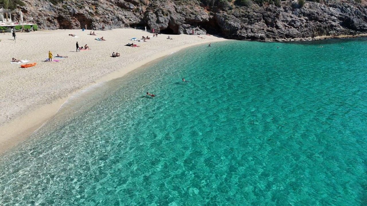 Antalya’nın Alanya ilçesinde hava sıcaklığının 20 dereceye çıktığı Mart ayında yerli ve yabancı turistler dünyaca ünlü Kleopatra plajına indi.