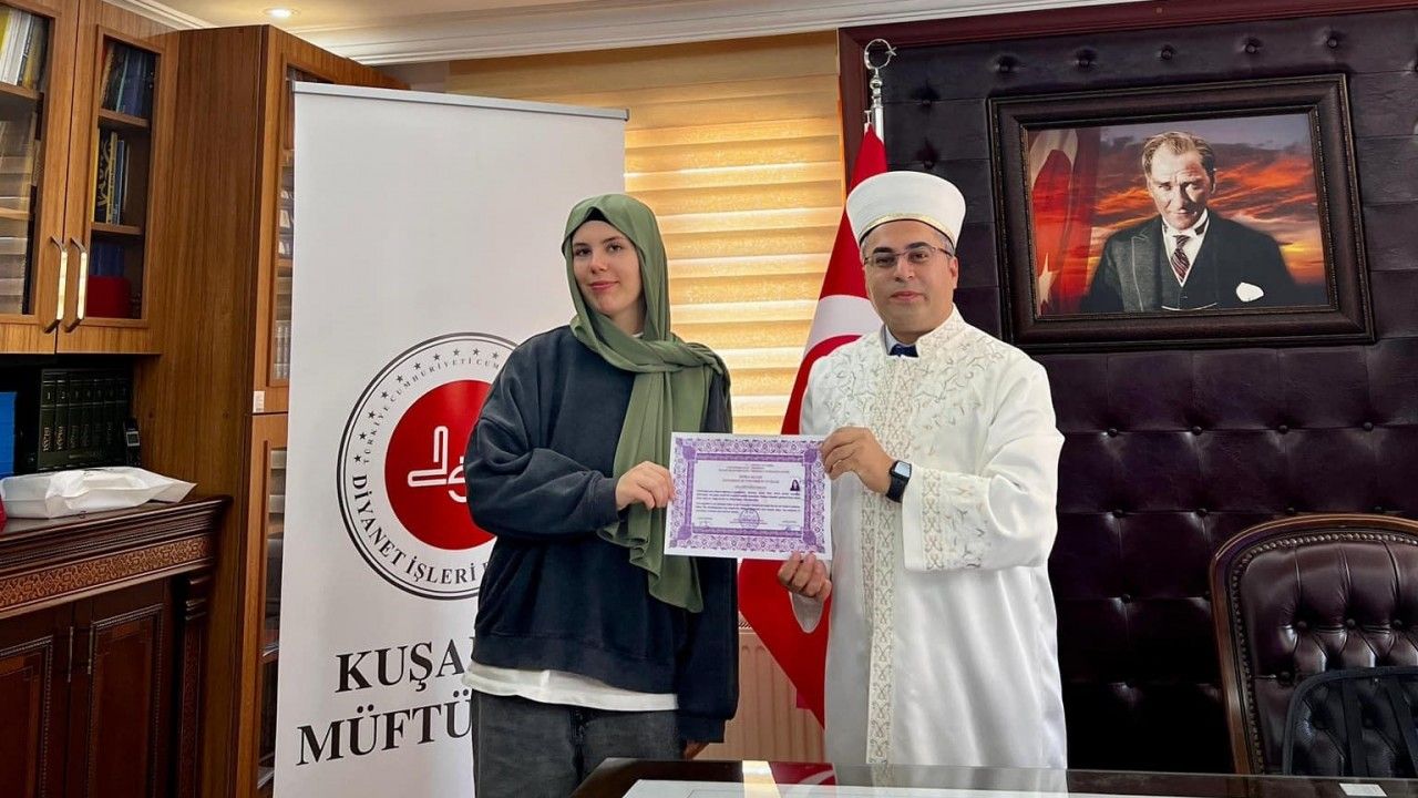 Almanya vatandaşı Tabea Asena Wohlrab, Aydın’ın Kuşadası ilçesinde yapılan ihtida töreniyle Müslüman oldu.