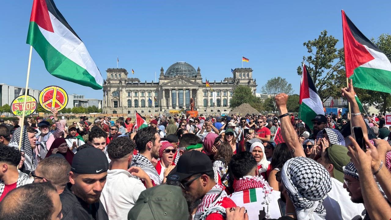 Alman Federal Meclisi önüne kadar yürüyen bazı göstericiler, Almanya’yı İsrail’e verdiği destek nedeniyle eleştiren sloganlar attı. Göstericilerin, "Almanya finanse ediyor İsrail bombalıyor", "Soykırımı durdurun", "Gazze’nin işgaline hayır" sloganları dikkat çekti. Genel olarak sakin geçen yürüyüşte bazı göstericiler Berlin polisi tarafından gözaltına alındı.