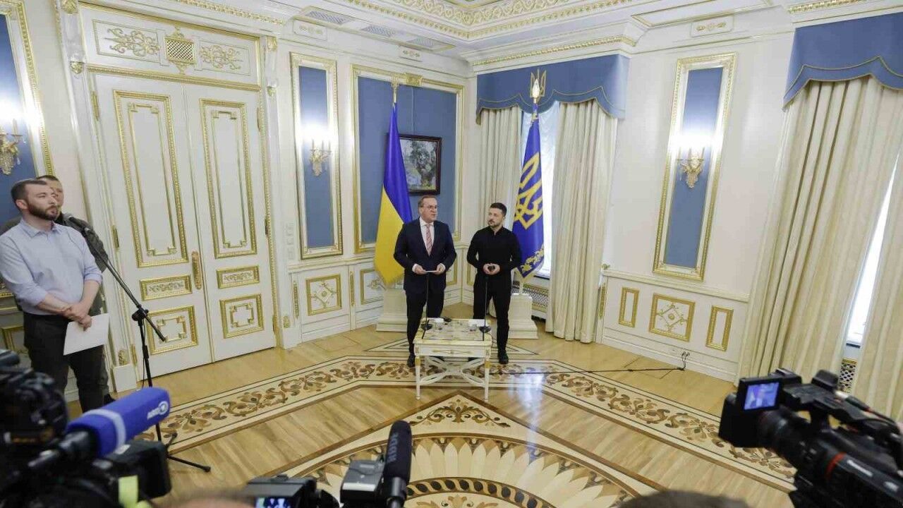 Almanya Savunma Bakanı Boris Pistorius, Ukrayna’ya düzenlediği sürpriz ziyaret kapsamında Ukrayna Devlet Başkanı Vladimir Zelenskiy ile bir araya geldi. Görüşmenin ardından Zelenskiy ve Pistorius, ortak basın toplantısı düzenledi.