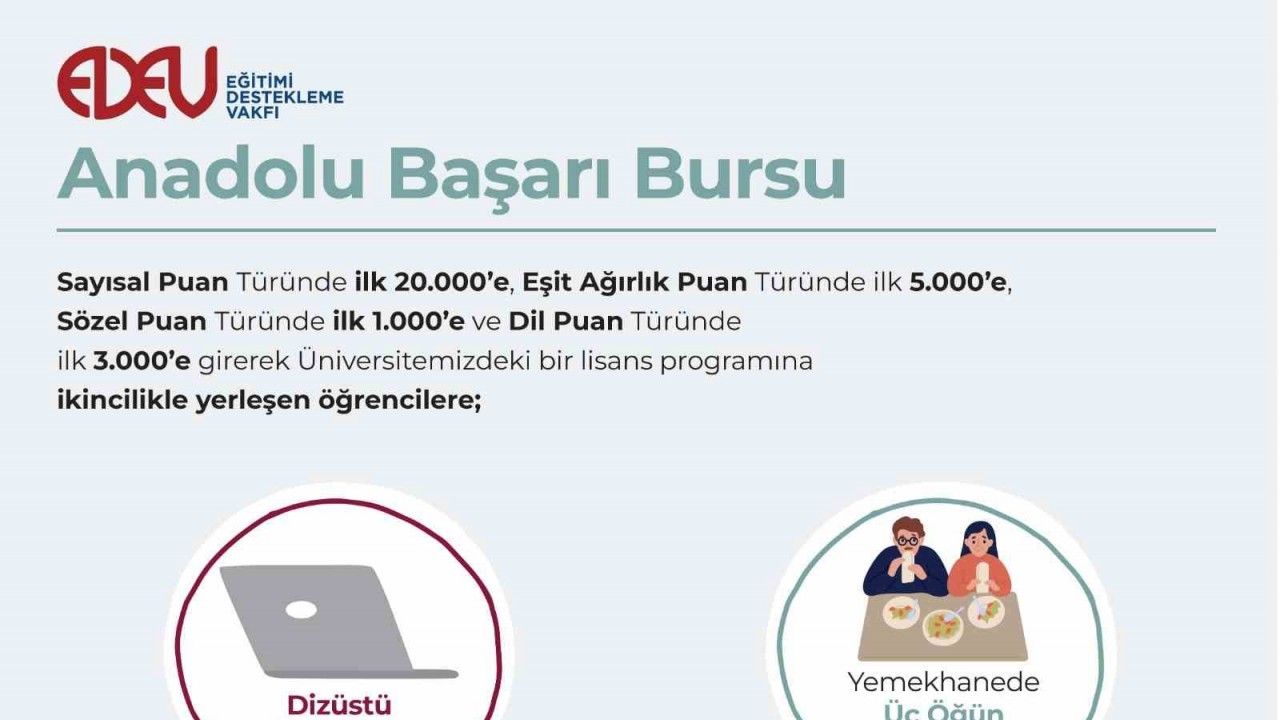 Anadolu Üniversitesi, başarıya giden yolda öğrencilerinin maddi ve sosyal olarak yanında olmayı sürdürüyor. Eğitimi Destekleme Vakfı (EDEV) iş birliğiyle sağlanan karşılıksız burslar sayesinde, Yükseköğretim Kurumları Sınavı’nda (YKS) ve özel yetenek sınavlarında üstün başarı gösteren öğrencilere kapsamlı destek sunuluyor.