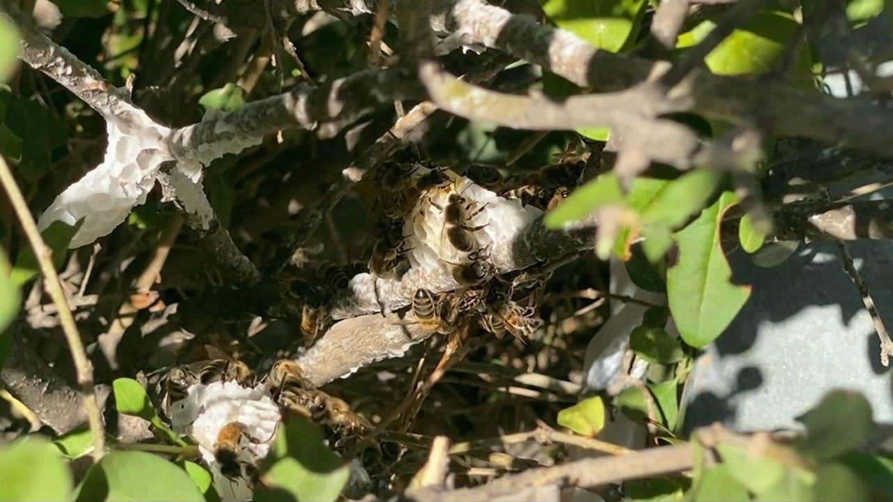 Ankara’da kovandan ayrılan bir bal arısı kolonisi, 2 apartman arasındaki çalılık alana yerleşti.