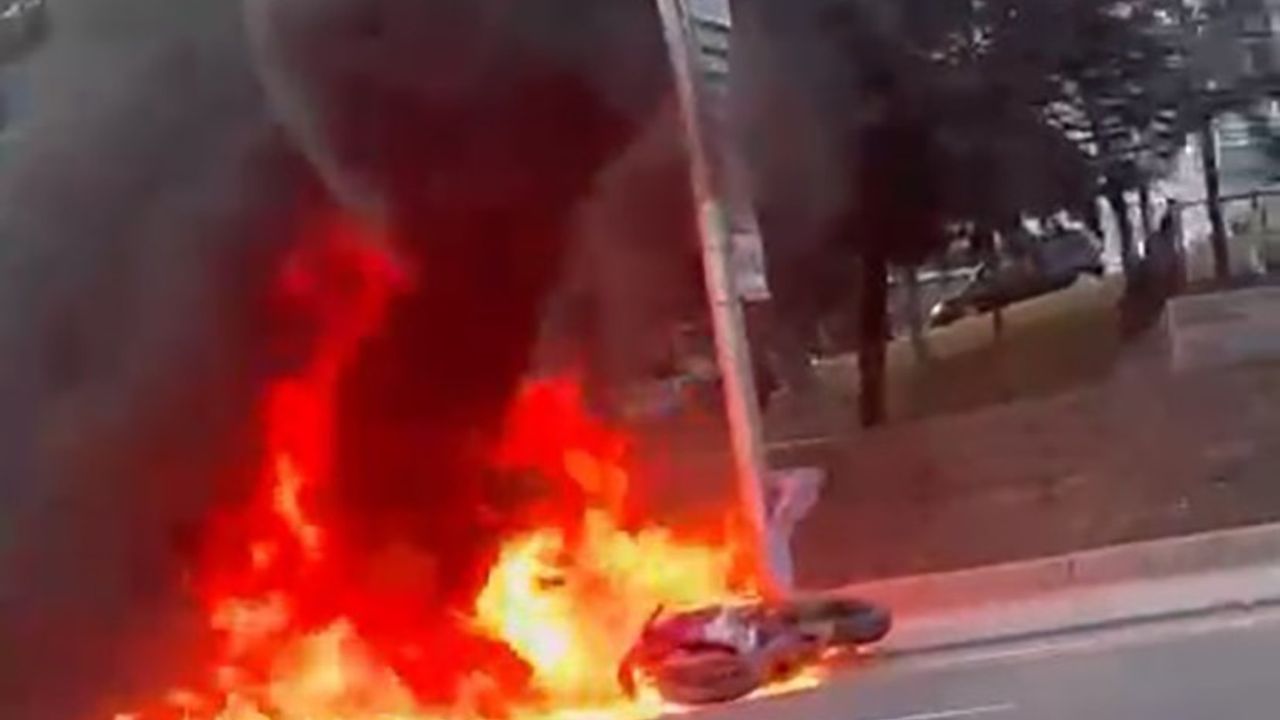 Alınan bilgiye göre, Protokol Yolu’nda seyir halindeki motosikletin sürücüsü, dumanlar çıktığını görünce aracı yolun kenarına çekti. Sürücünün yol kenarına çekmesinden kısa süre sonra motosiklet alev aldı. Motosiklet sürücüsü, alev alan motorunu çevredeki vatandaşlardan aldığı yangın tüpüyle söndürmeye çalıştı. Ancak yanan araç kullanılamaz hale geldi.