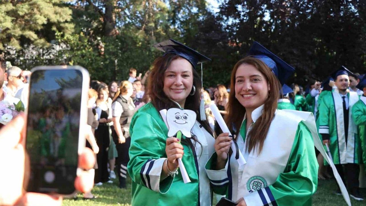 Kocaeli Sağlık ve Teknoloji Üniversitesi’nin mezuniyet törenine anne-kız damga vurdu. Aynı anda mezun olan anne kız, birlikte diş kliniği açmaya hazırlanıyor.