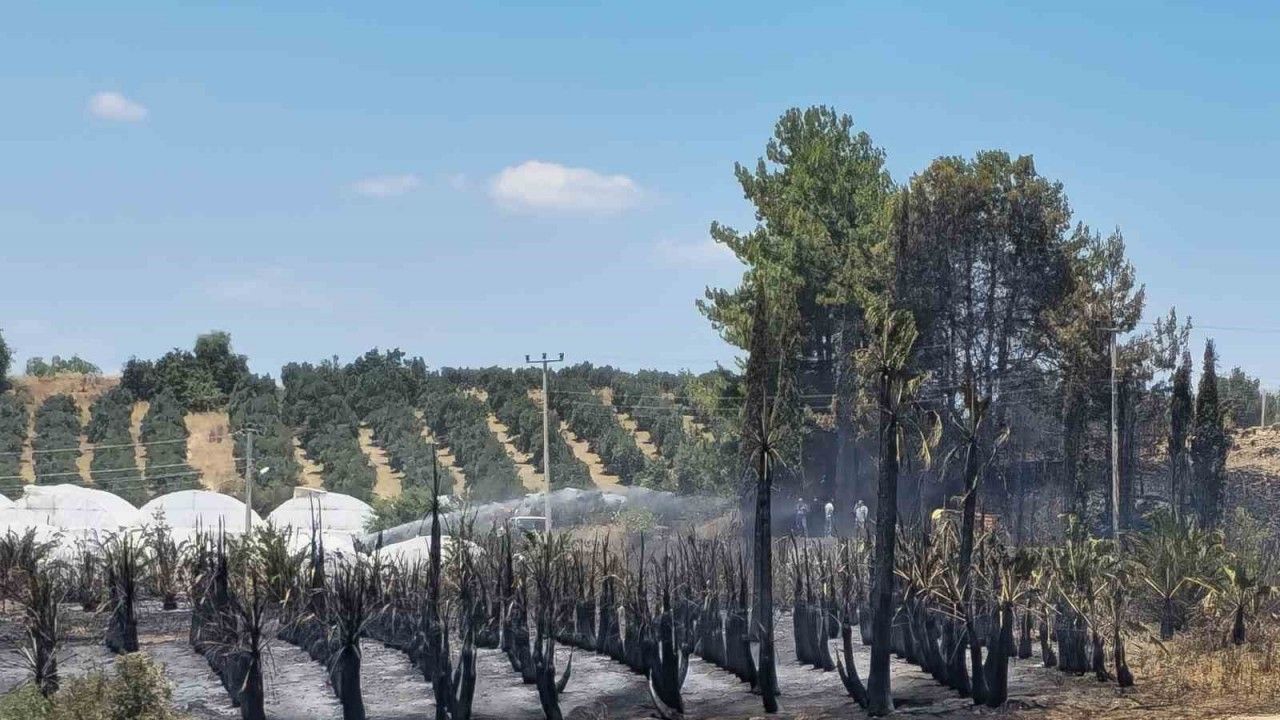 Antalya’nın Aksu ilçesinde kırsal alanda çıkan yangında palmiye ve zeytin ağaçları zarar görürken, bazı naylon seralarda da hasar meydana geldi.