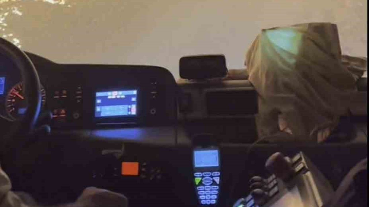 İzmir’in Buca ilçesinde dün öğleden sonra çıkan orman yangınında arazözle alevlerin ortasında kalan söndürme ekibi, soğukkanlı şekilde geri manevra yaparak kurtulmayı başardı.