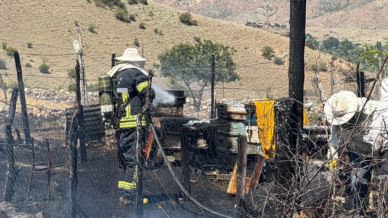 Erzurum’da meydana gelen yangında arı kovanları yandı.