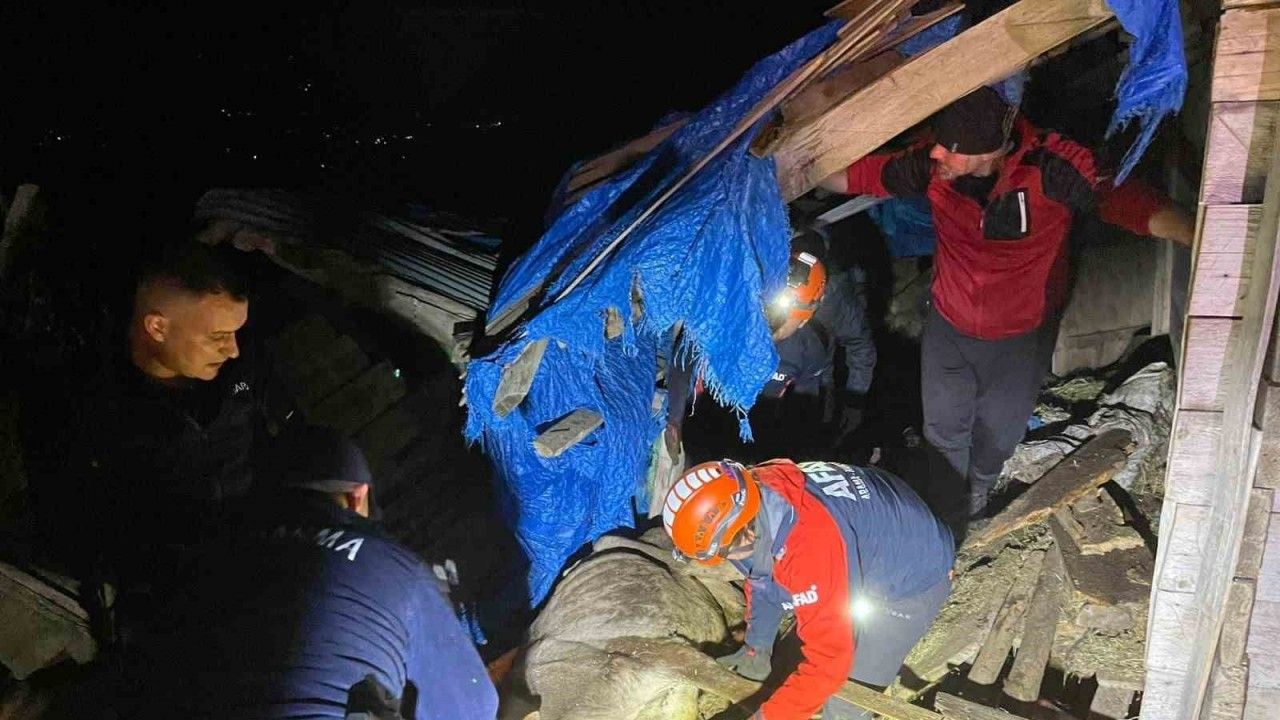Artvin’in Borçka ilçesinde iki katlı ahır çöktü, içinde bulunan 33 büyükbaş hayvan kurtarıldı.