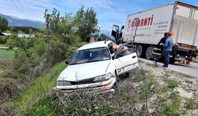 Demir bariyerlere çarpan otomobil parçalandı: Sürücü yaralandı