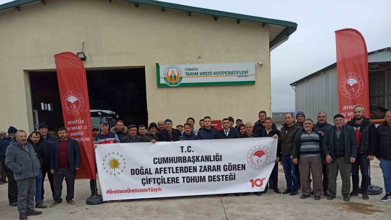 “Cumhurbaşkanlığı Doğal Afetlerden Zarar Gören Çiftçilere Tohum Desteği” programı çerçevesinde İl Tarım ve Orman Müdür Vekili Abdullah Dönmez, Aslanapa İlçe Tarım ve Orman Müdürü Alptuğ Tekeli, Aslanapa Belediye Başkanı Necati Kulik, Aslanapa Ziraat Odası Başkanı ve çiftçilerin katılımıyla bir program düzenlendi.