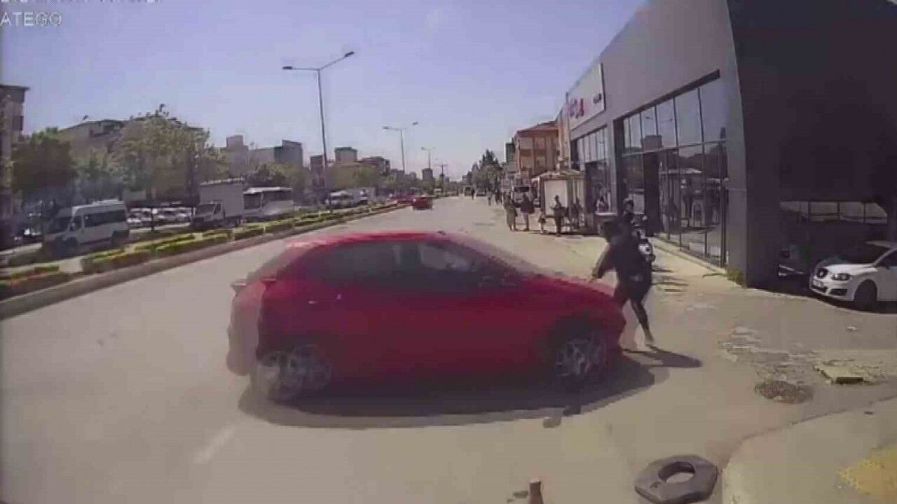 Ataşehir’de yokuş aşağı seyir halindeki araçların karıştığı zincirleme kazada savrulan otomobil yayaya çarptı. Yaralanan kadın hastaneye kaldırılırken, kaza anı güvenlik kamerasına yansıdı.