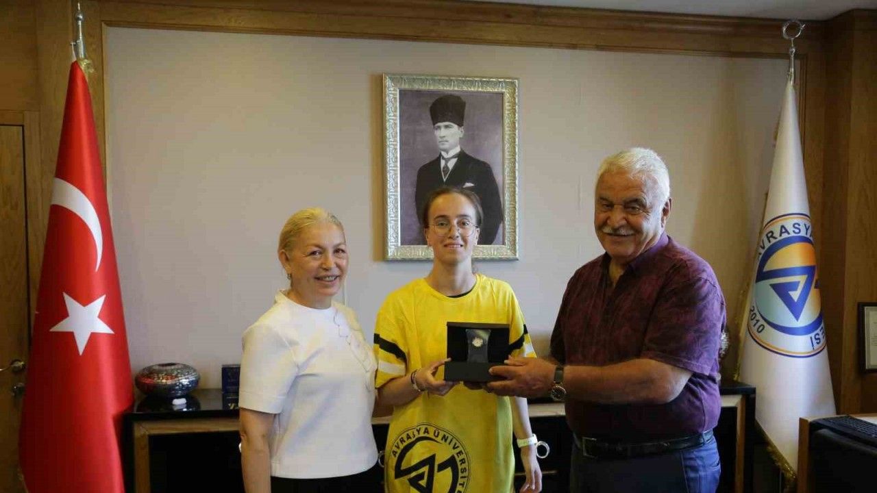 Avrasya Üniversitesi Spor Bilimleri Fakültesi Egzersiz ve Spor Bilimleri Bölümü 4. Sınıf öğrencisi Ceyda Düşkün 25-26 yaş kategorisinde altın madalya kazandı. Düşkün, üniversitenin Mütevelli Heyet Başkanı Ömer Yıldız’ı makamında ziyaret etti.
