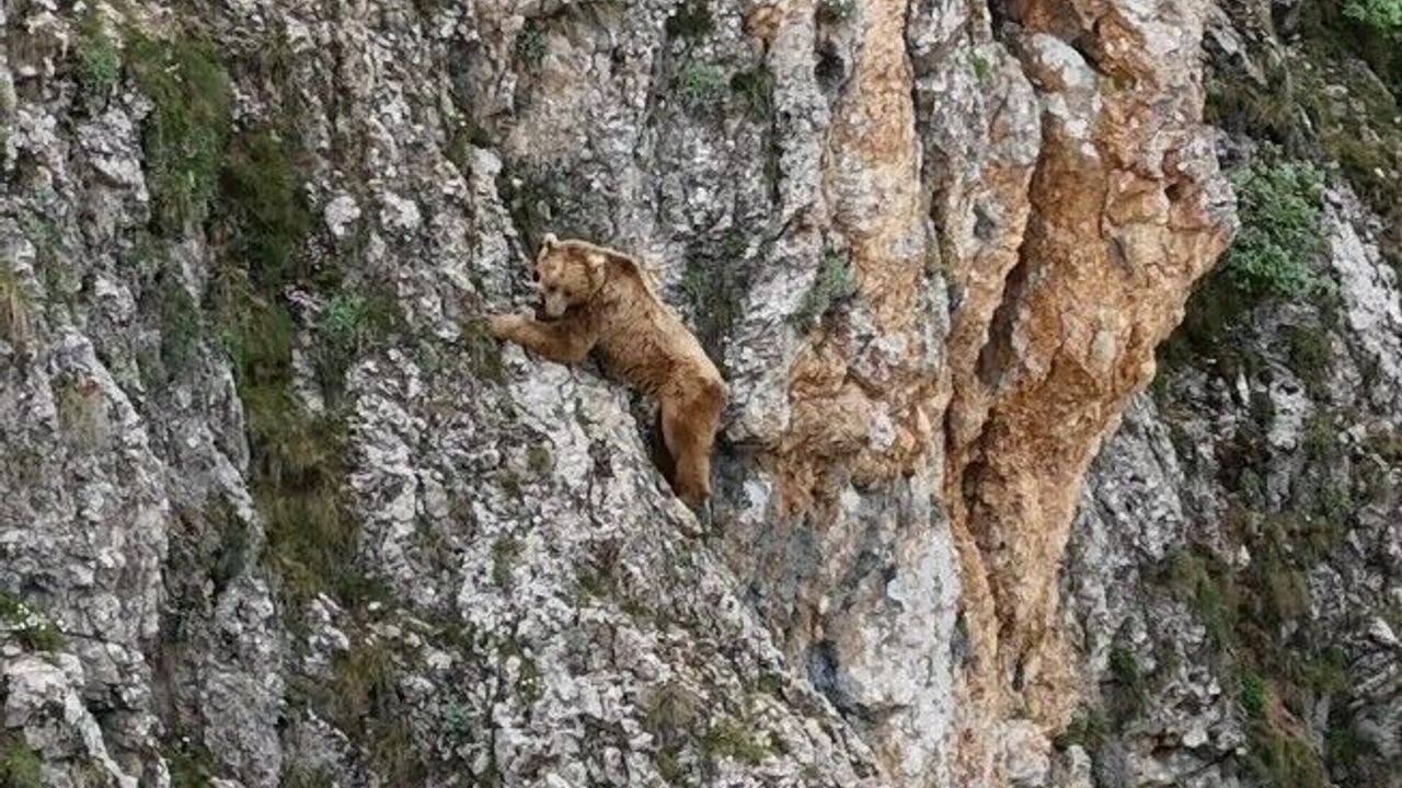 Tunceli’de zorlu kayalıklardan muhteşem iniş yapan bozayı dağcılara parmak ısırttı.