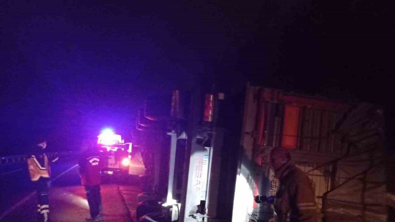 Edinilen bilgiye göre, İhbar üzerine saat 00.15’te hareket eden Balıkesir Büyükşehir Belediyesi İtfaiye ekipleri, 00.22’de olay yerine ulaştı. 10 LT 999 plakalı tırın yan yattığını tespit eden ekipler, tır içerisinde mahsur kalan İ.P. isimli vatandaşı kurtararak yaralı halde 112 sağlık ekiplerine teslim etti.