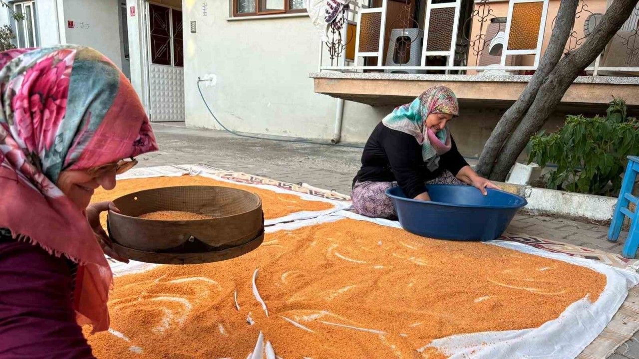 Kışa hazırlığın simgesi haline gelen Sındırgı tarhanası, ilçede hem sofraların hem de gönüllerin vazgeçilmezi olmaya devam ediyor.
