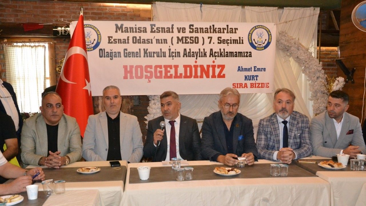MESO’yu proje üreten bir oda haline getireceğini söyleyen başkan adayı Kurt, "4 sene önce ‘Değişim’ sloganıyla hareket ederek Manisa Esnaf Odasına ekibimizle birlikte talip olduk. Seçim biter bitmez sizlerden aldığımız güven ve cesaretle hemen kolları sıvadık ve bir sonraki seçim için çalışmaya başladık. Manisa esnafımız son yıllarda hem ekonomik hem de manevi olarak zor günler geçirdi. Pandemi döneminden kalma ekonomik ve yapısal sorunlar maalesef çözülemedi. Bu zaman zarfında esnafımız yalnız bırakıldı çalacak kapı aradı. Bu seçim döneminde oluşan ve bir türlü dolmayan bu boşluğu doldurmak ve daha kötü günler gelmeden önlem almak adına yapılamayanı yapmak için sizlerden yetki istiyoruz. Amacımız Manisa esnaf odalarını sadece üye aidatı toplayan bir kurum olmaktan çıkarıp, proje bazlı çalışan, esnafın alın terine, emeğine değer kazandıran bir oda haline getirmektir. Ben bu zorluk ve durumları yaşayan bir kardeşiniz olarak ekip arkadaşlarımla birlikte bu duruma çare olmaya talibiz. Ekibimizle sürekli istişare halindeyiz, ben değil biz diyerek yola çıkan ekibimiz uzun süre yaptığı istişare ve çalışmalar neticesinde sorunların tespitini yaptık ve çözüm odaklı projelerimizi hazırladık. Önümüzdeki günlerde sizlerin de geniş katılımlarıyla birlikte yapacağımız toplantıda inşallah bu projelerimizi açıklayacağız. Bu vesile ile 2026 yılının başta Manisa esnafımız ve odamız için hayırlılar getirmesini Manisa esnafımızın yüzünün güldüğü bir yıl olmasını temenni ediyoruz. Katılımlarınızla bizlere güç verdiğiniz için hepinize teşekkür ediyorum. Son sözümüz: Manisa esnafımız için sıra bizde diyorum" ifadelerini kullandı.