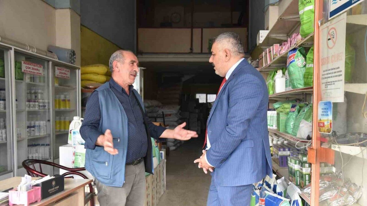 Niyazi Mısri Mahallesi’ndeki, zirai ilaç, tarım makinesi, ekipman satışı yapan firmaları ziyaret eden MTSO Yönetim Kurulu Başkan Sadıkoğlu, zirai don afeti sonrası yaşanan iş kayıpları nedeniyle ekonomik dar boğaza giren esnafla bir araya geldi.