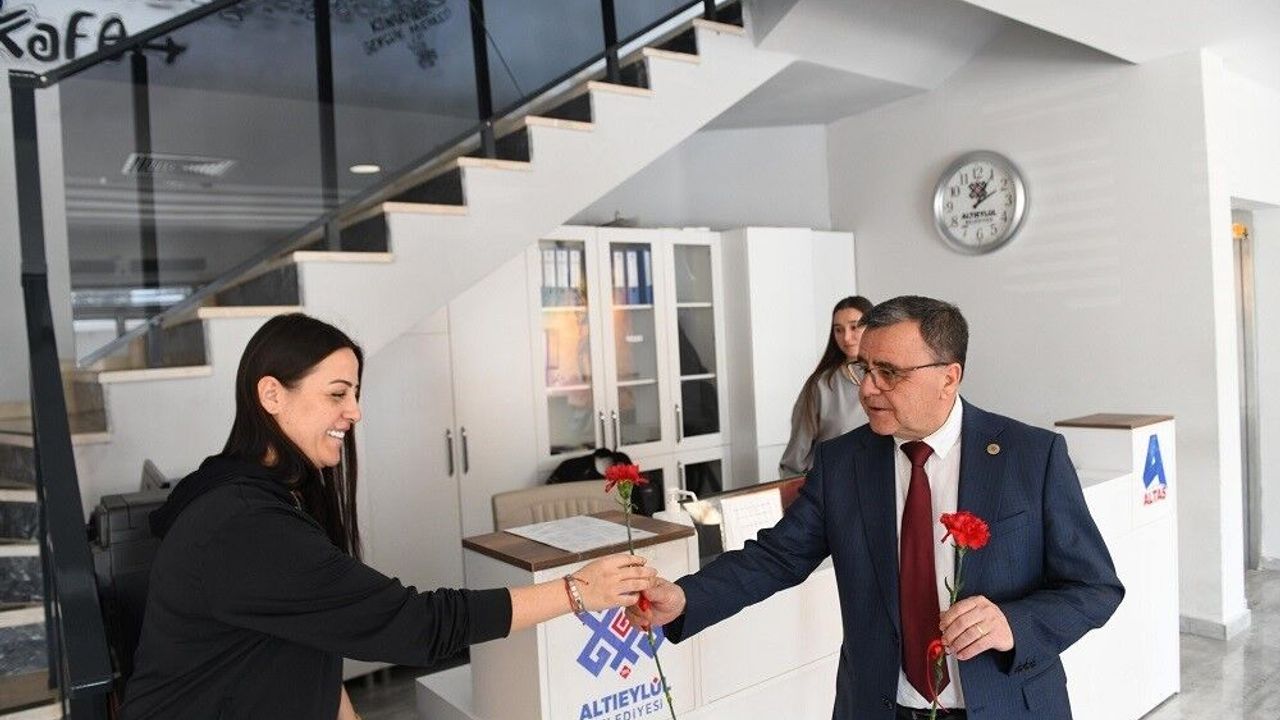 Altıeylül Belediye Başkanı Hakan Şehirli ve eşi Hüveyla Şehirli, 8 Mart Dünya Kadınlar Günü nedeniyle kadın çalışma arkadaşlarını ziyaret ederek, bu özel günü kutladılar.