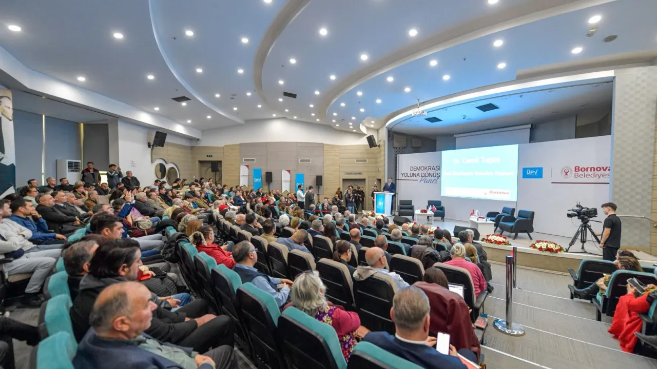 İzmir Büyükşehir Belediye Başkanı Dr. Cemil Tugay, Bornova Belediyesi ve Ülke Politikaları Vakfı (ÜPV) tarafından düzenlenen Demokrasi Yoluna Dönüş panelinde konuştu.İZMİR (İGFA) - Bornova Belediyesi ve Ülke Politikaları Vakfı (ÜPV), Bornova Nevzat Kavalar Kültür Merkezi'nde Demokrasi Yoluna Dönüş paneli düzenledi. İzmir Büyükşehir Belediye Başkanı Dr. Cemil Tugay'ın da katıldığı panelde; İstanbul Büyükşehir Belediye Meclisi CHP Grup Başkan Vekili ve ÜPV Yönetim Kurulu Başkanı avukat İsmail Doğan Subaşı, Bornova Belediye Başkanı Ömer Eşki, Maliye eski Bakanı Zekeriya Temizel, Karşıyaka Belediye Başkanı Yıldız Ünsal, Kemalpaşa Belediye Başkanı Mehmet Türkmen, İzmir Büyükşehir Belediyesi Genel Sekreteri Ramazan Tezcan, meclis üyeleri, siyasi parti temsilcileri, akademisyenler ve hukukçular yer aldı.