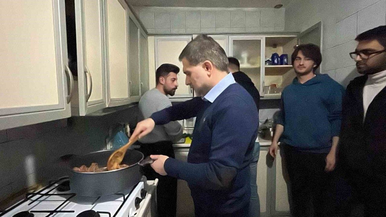 Erzurum’un merkezi ilçesi olan Yakutiye Belediye Başkanı Dr. Mahmut Uçar bu Ramazan’da da geleneği bozmadı ve Ramazanın ilk iftarını üniversite öğrencileriyle birlikte açtı. Yumurtalı kıymalı pide yaptırarak üniversiteleri gençlerin öğrenci evine konuk olan Uçar, elleriyle yaptığı kıymayla da gençlerden tam not aldı. Zaman zaman esprili anların yaşandığı iftar buluşmasında gençlerin hatıralarını da dinleyen ve kendi öğrencilik döneminden hatırlarını anlatarak tecrübelerini paylaşan Başkan Uçar, kayınvalidesinin yaptığı Erzurum’a özgü ayran aşı çorbasını gençlere tattırarak, keyifli anlar yaşattı.