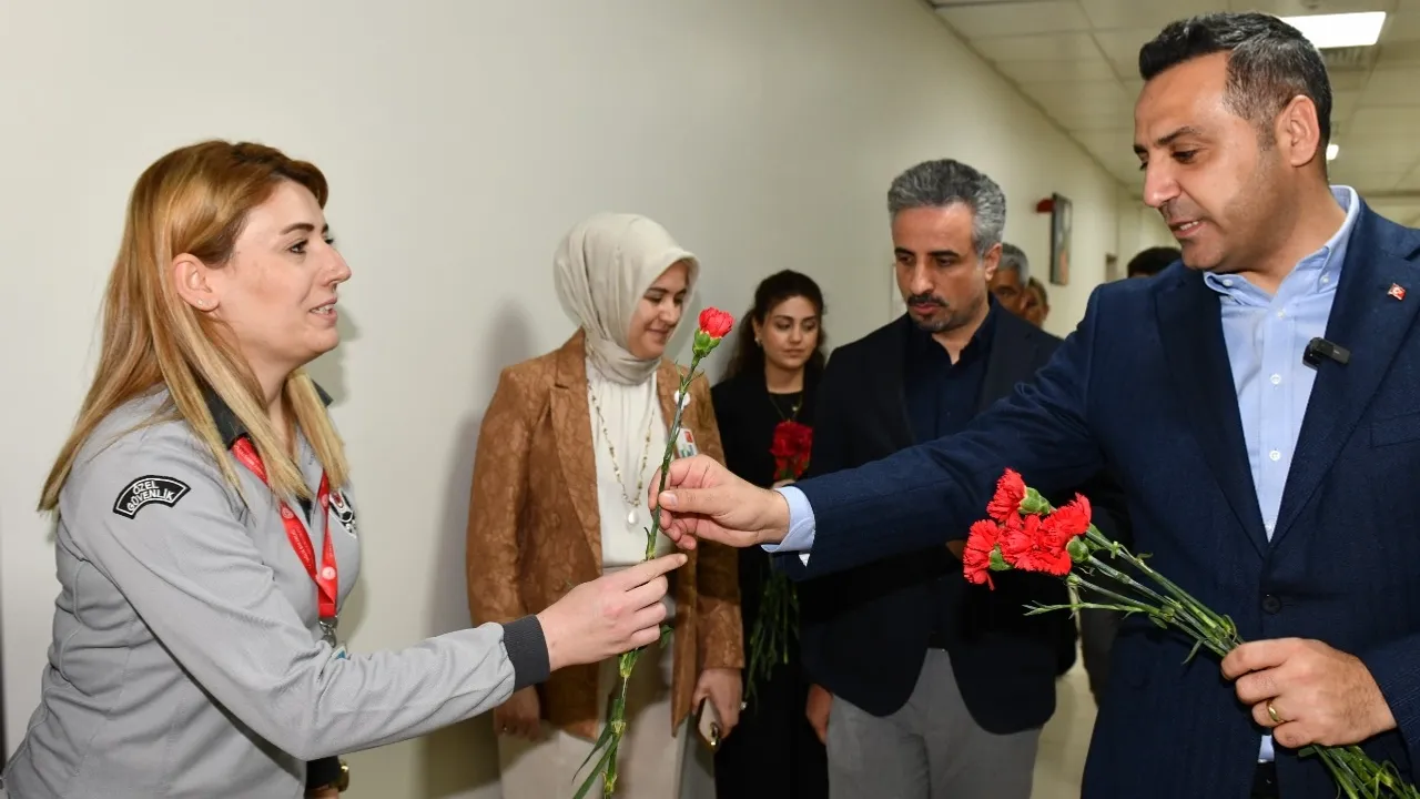 İzmir Çiğli Belediye Başkanı Onur Emrah Yıldız, 14 Mart Tıp Bayramı dolayısıyla sağlık çalışanlarını ziyaret ederek karanfil dağıttı. Başkan Yıldız, sağlık çalışanlarının fedakarlıklarına dikkat çekerek, “Halkımızın sağlığı için gece gündüz demeden büyük bir özveriyle çalışan tüm sağlık çalışanlarımızın Tıp Bayramı’nı kutluyorum. Onların emeği, toplum için paha biçilemez” dedi.İZMİR (İGFA) - İzmir Çiğli Eğitim ve Araştırma Hastanesi’ni ziyaret eden Başkan Yıldız, sağlık çalışanlarına moral desteği verdi. Ziyareti sırasında Başhekim Doç. Dr. Adnan Yamanoğlu’na çiçek takdim eden Yıldız, ardından tüm sağlık emekçilerine karanfil dağıtarak, özverili hizmetlerinden dolayı teşekkür etti.