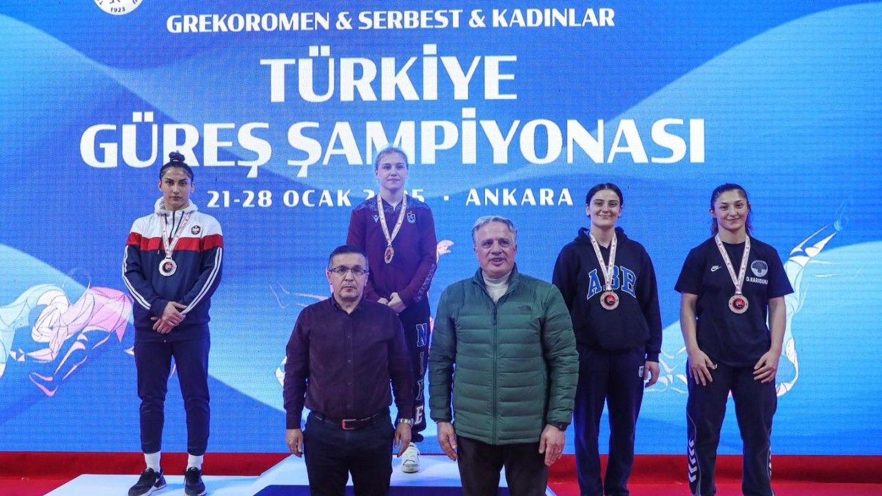 Keçiören Taha Akgül Spor Salonu’nda düzenlenen Büyükler Serbest Türkiye Güreş Şampiyonası son gün müsabakaları tamamlandı, Grekoromen-Serbest Kadınlar Türkiye Şampiyonası’nda Bayburtlu Beyza Nur Akkuş, 65 kiloda Türkiye birincisi oldu.