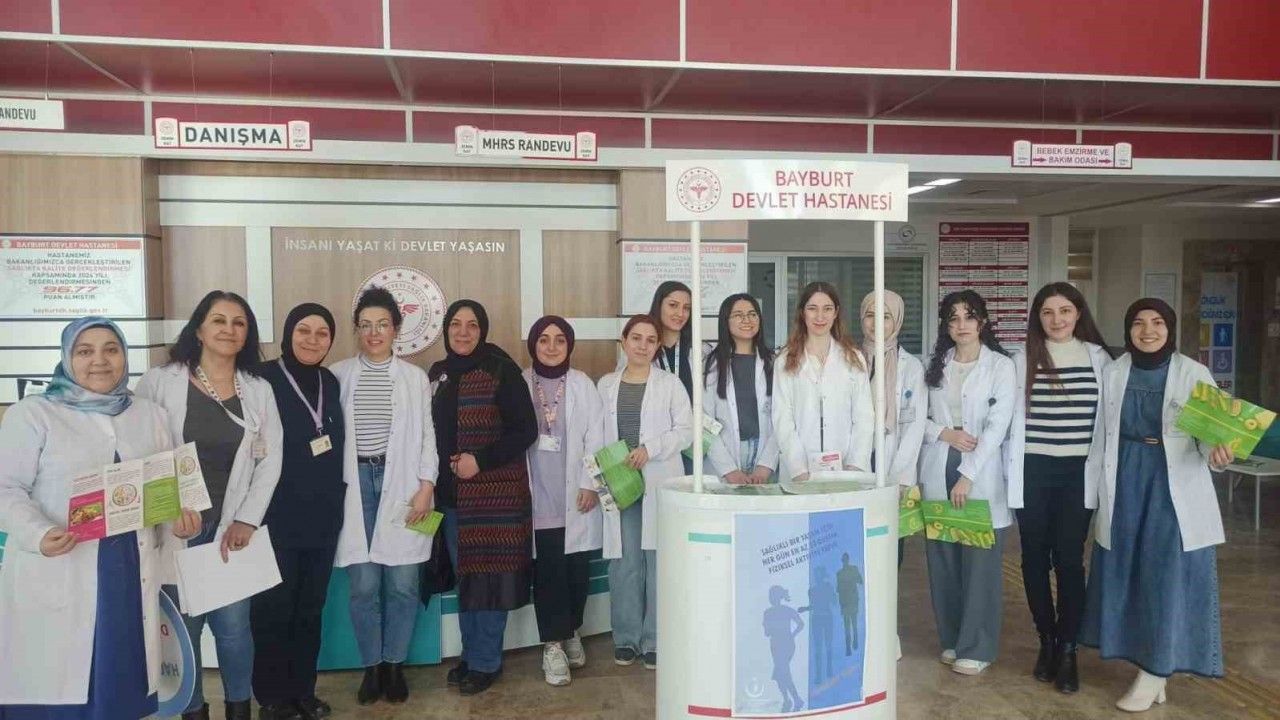 Bayburt Devlet Hastanesinde obeziteye dikkat çekmek amacıyla stant açıldı, stantta obeziteye neden olan etkenler ve beraberinde yaşanan sağlık sorunları anlatıldı.