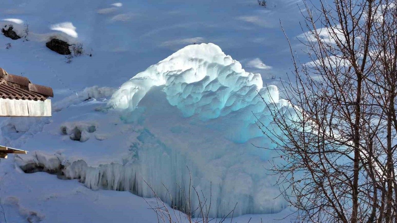 Oluşan buz kütlesi havanın ne denli soğuk olduğunu gözler önüne seriyor