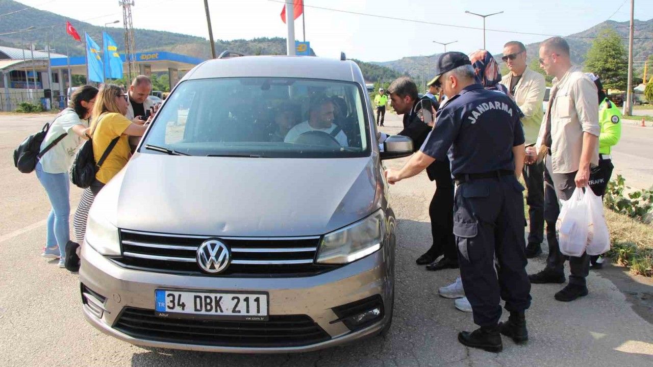 Kurban Bayramı tatili nedeniyle kara yoluyla seyahat eden vatandaşlara Amasya’da hoş bir sürpriz yapıldı. Polis uygulama noktasında durdurulan araç sürücülerine ve yolculara, protokol tarafından Amasya’nın yöresel lezzeti olan çörek ikram edildi.