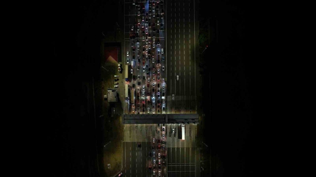 Kurban Bayramı tatili sebebi ile memleketlerine gitmek için erkenden yola çıkan tatilciler, Sakarya’da Kuzey Marmara Otoyolu ile Anadolu Otoyolu’nun kesiştiği noktada uzun araç kuyrukları oluştu. Otoyolların kesişim noktasında duran trafik havadan görüntülendi.