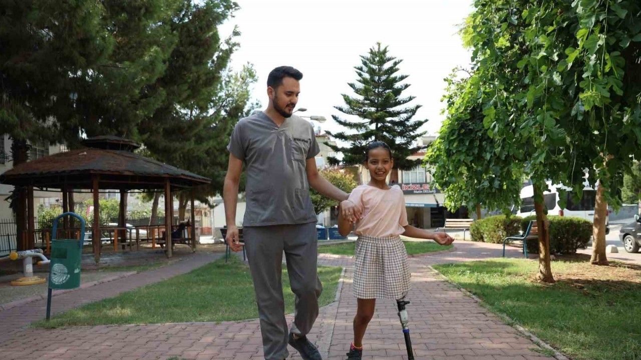 Adana’da Büyükşehir Belediyesi’ne ait yolcu otobüsünün çarpması sonucu 4 sene önce sol bacağını kaybeden 10 yaşındaki Rukiye Emine Kaplan’a protez bacak takıldı. Rukiye Emine, ilk adımlarını parka giderek attı.