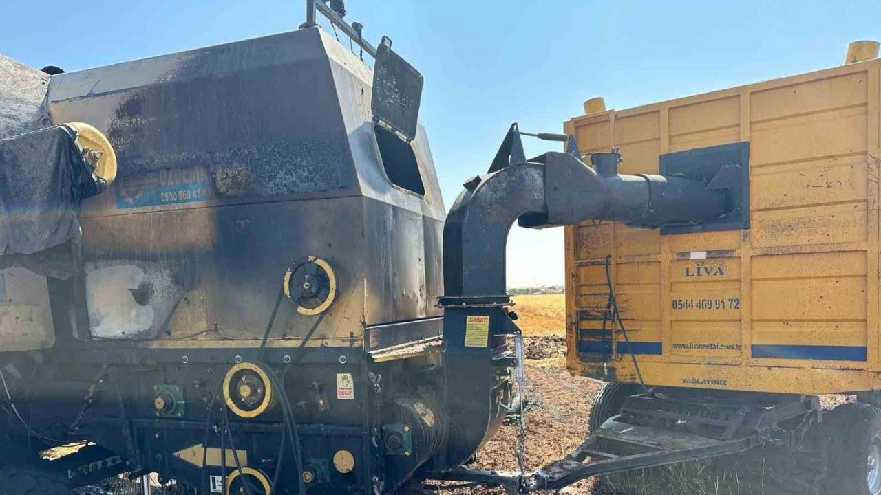 Şanlıurfa’nın Viranşehir ilçesinde, hasat yapan biçerdöverin motor kısmında çıkan yangın, buğday tarlasına zarar verdi