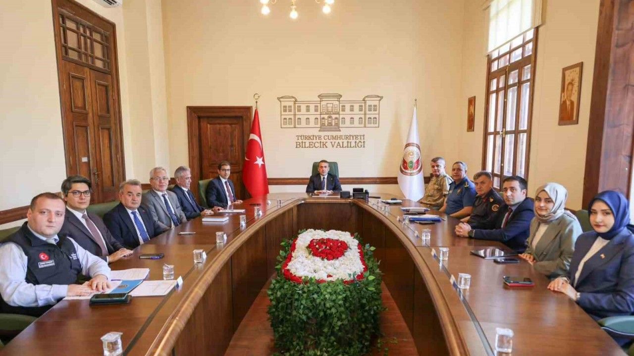 Valilik Toplantı Salonu’nda düzenlenen toplantıya, Vali Sözer’in yanı sıra; Bilecik Jandarma Eğitim Komutanı Tümgeneral Uğur Ertekin, İl Jandarma Komutanı Albay Ferdi Erbakıcı, Cumhuriyet Başsavcısı Burak Olgun, İl Emniyet Müdürü Hakan Yılmaz ile ilçe kaymakamları katıldı.