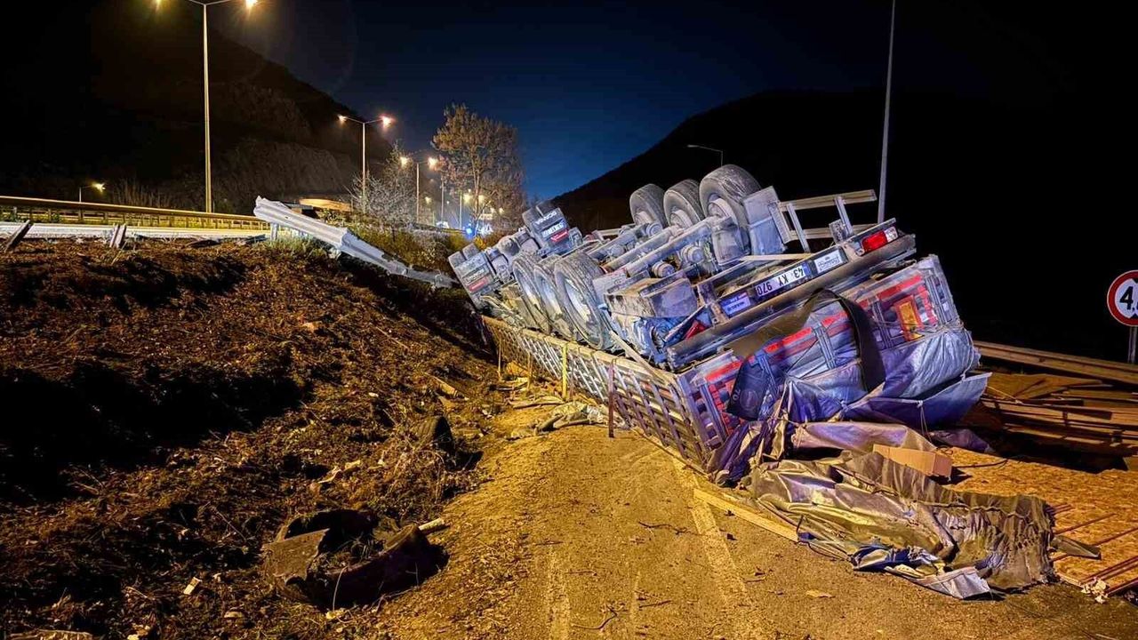 Bilecik'te meydana gelen kazada kontrolden çıkarak devrilen tırın sürücüsü yaralandı.