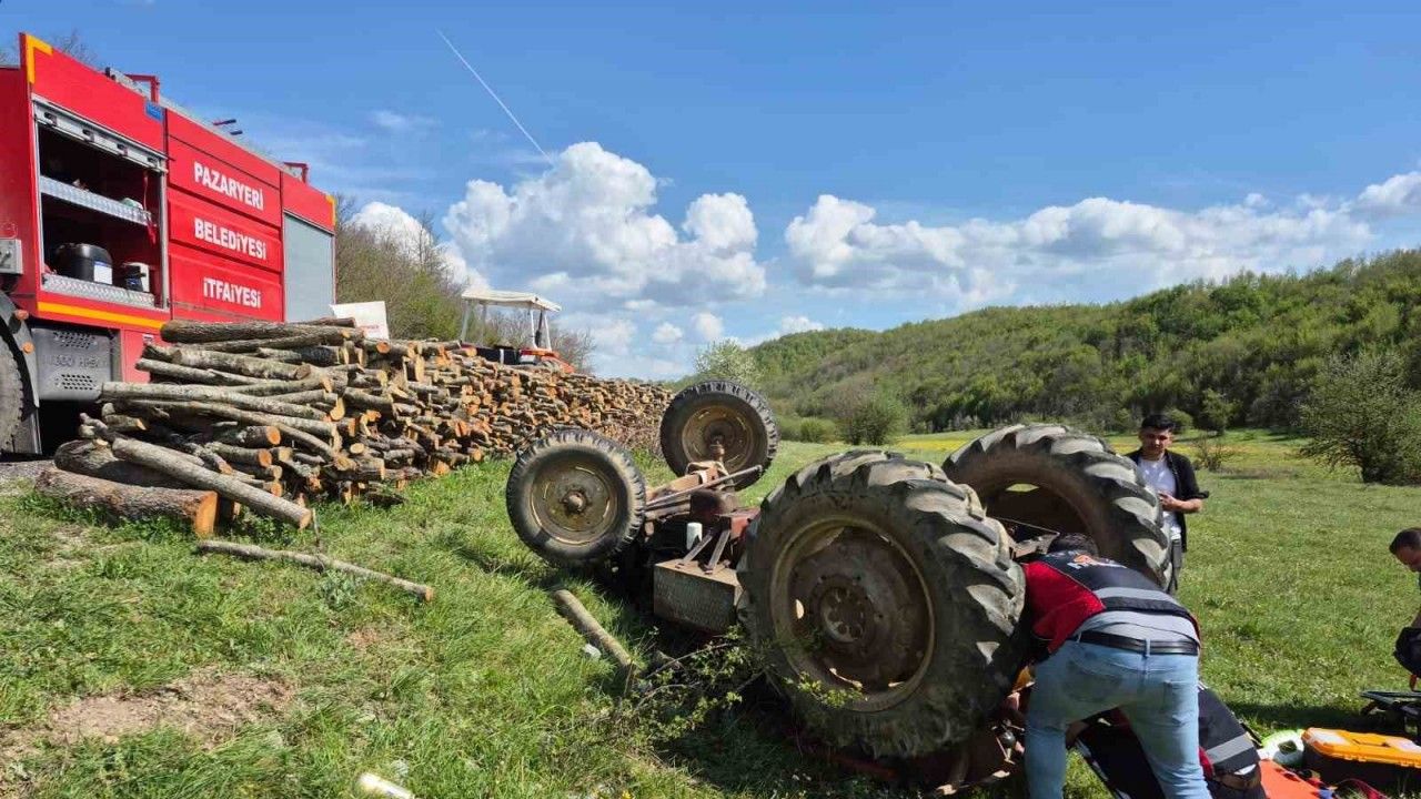 Bilecik’in Pazaryeri ilçesinde direksiyon hakimiyetini kaybeden traktör sürücüsü, devrilen traktörün altından yaralı kurtarıldı.