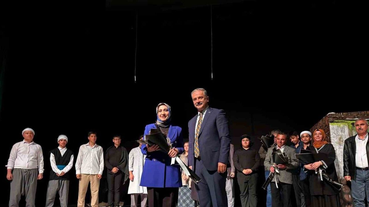 İl Milli Eğitim Müdürü Elif Özbek sahnelenen oyunda emeği geçen öğrencileri ve öğretmenleri tebrik etti.