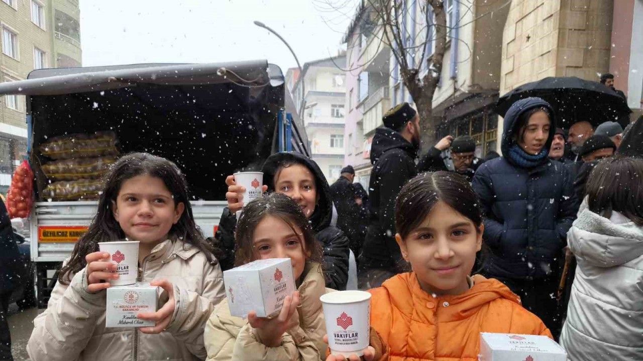 Bitlis Vakıflar Bölge Müdürlüğü sorumluluk alanında bulunan 6 ilde belirlenen camilerde vatandaşlara sıcak salep ve kandil simidi ikramında bulundu.