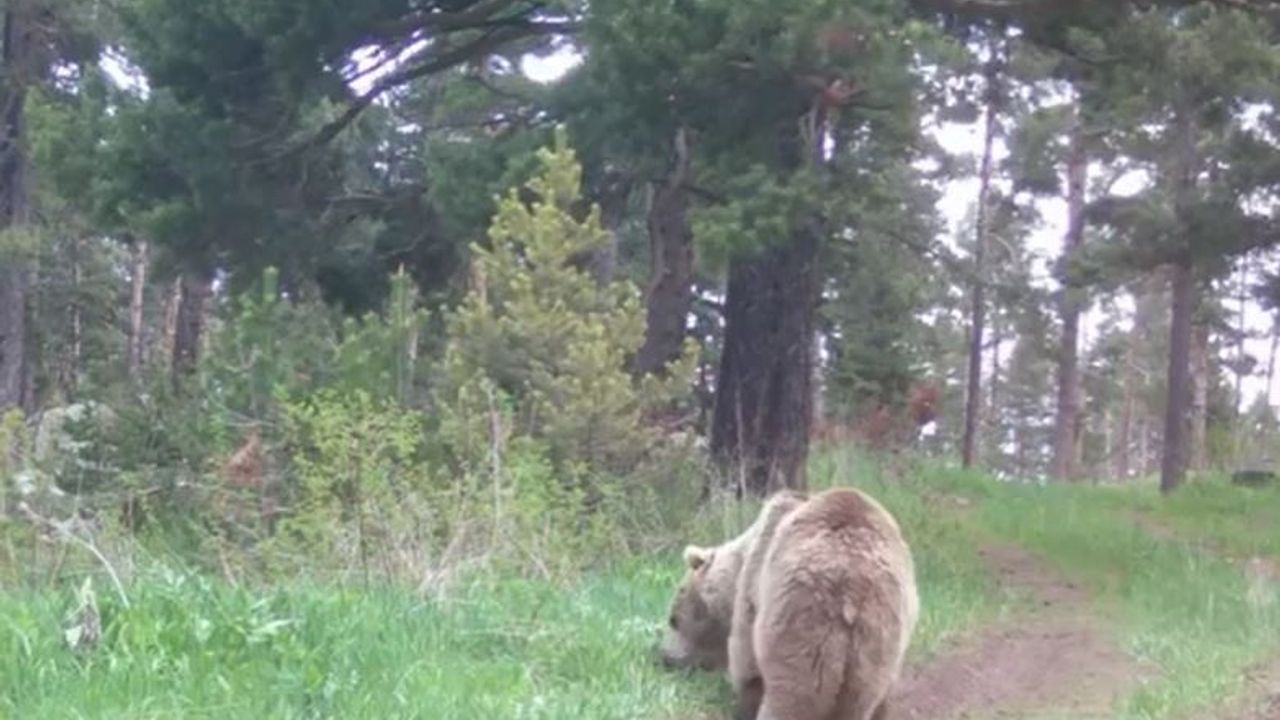 Ardahan’da Yalnızçam ormanlık alanına kurulan fotokapana yaban hayvanlarının doğal yaşamdaki görüntüleri yansıyor. Fotokapana son olarak ormanlık arazide gezen bir bozayının ot yiyerek beslendiği anlar yansıdı.