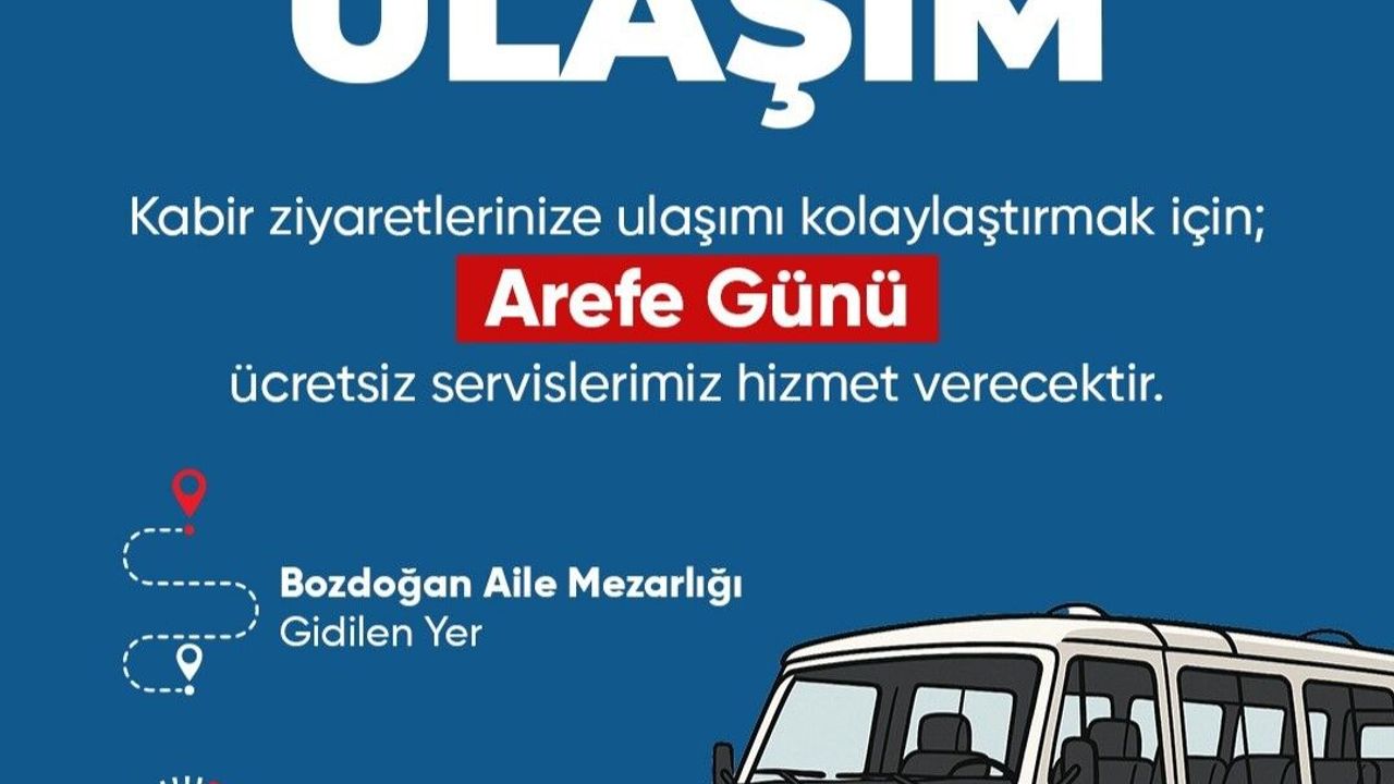 5 Haziran 2025 Perşembe günü, saat 09.00 ile 17.00 arasında, Çarşı Camii önünden kalkacak servis araçları ile vatandaşlar Bozdoğan Asri Mezarlığı’na ücretsiz bir şekilde ulaştırılacak. Bozdoğan Belediyesi tarafından organize edilen bu hizmet, özellikle yaşlı, engelli ve özel aracı bulunmayan vatandaşlar için büyük bir kolaylık sağlıyor.