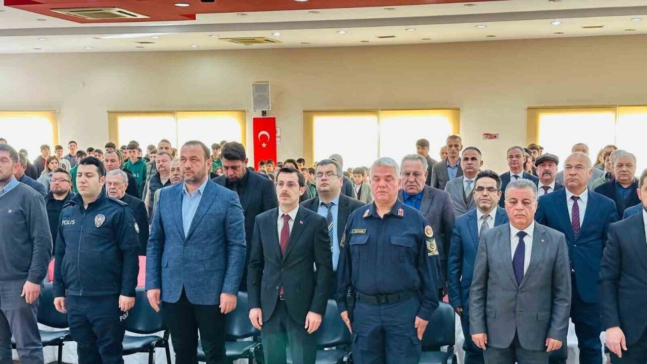 Belediye Düğün Salonu’nda gerçekleştirilen etkinliğe Kaymakam Yunus Emre Polat, Belediye Başkan Yardımcısı Savaş Mammacı, siyasi parti temsilcileri, kurum amirleri, öğretmenler ve öğrenciler katıldı.