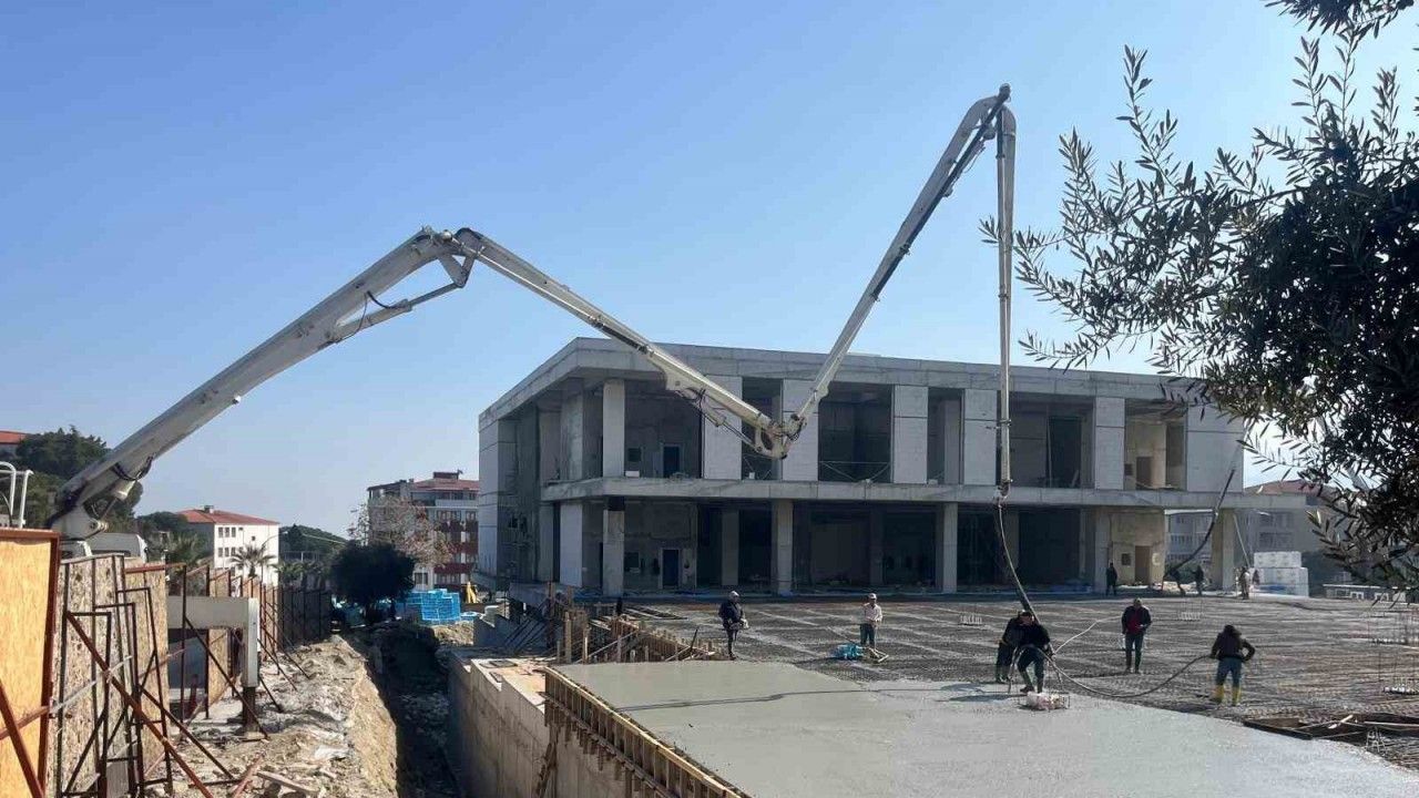 Denizli Büyükşehir Belediyesi tarafından Buldan’da yapılan oto santral garajı, kapalı ve açık Pazar yeri ve otopark inşaatında kaba inşaat çalışmaları hızla devam ediyor.