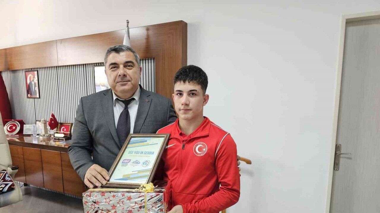 4-14 Nisan 2025 tarihlerinde Sırbistan’da düzenlenecek olan Okul Sporları Dünya Şampiyonası’na katılmaya hak kazanan Afyonkarahisar Spor Lisesi öğrencisi Arif Bulut, okul idarecileriyle birlikte İl Milli Eğitim Müdürü Miraç Sünnetci’yi makamında ziyaret etti.